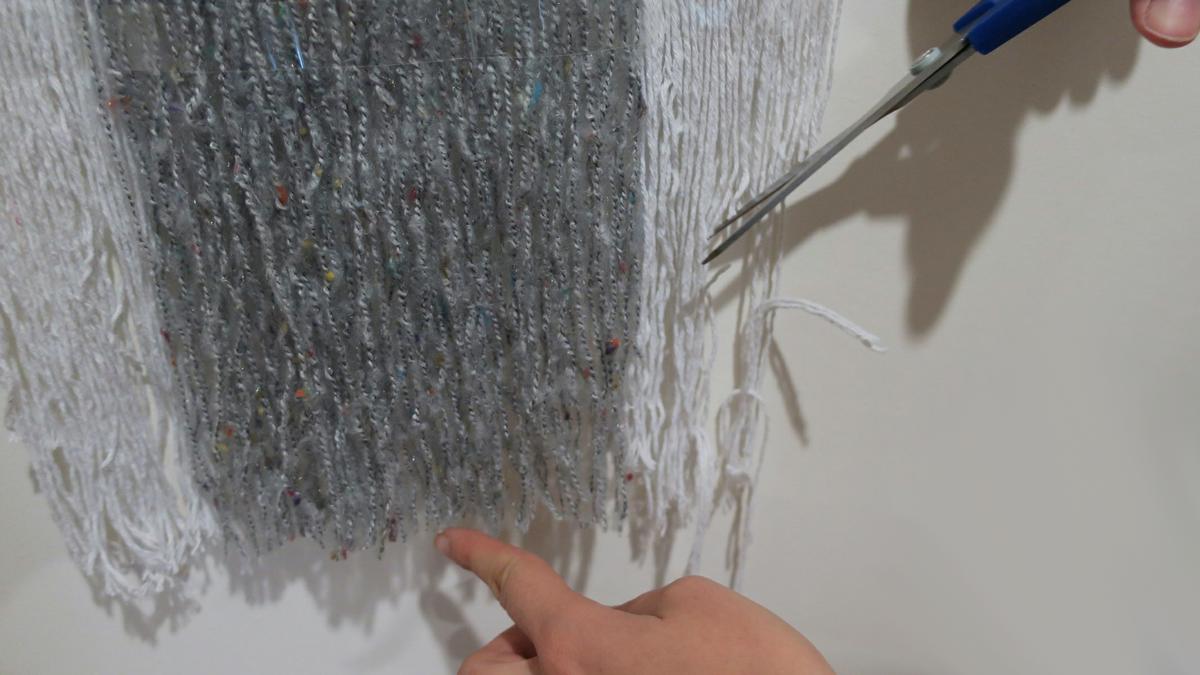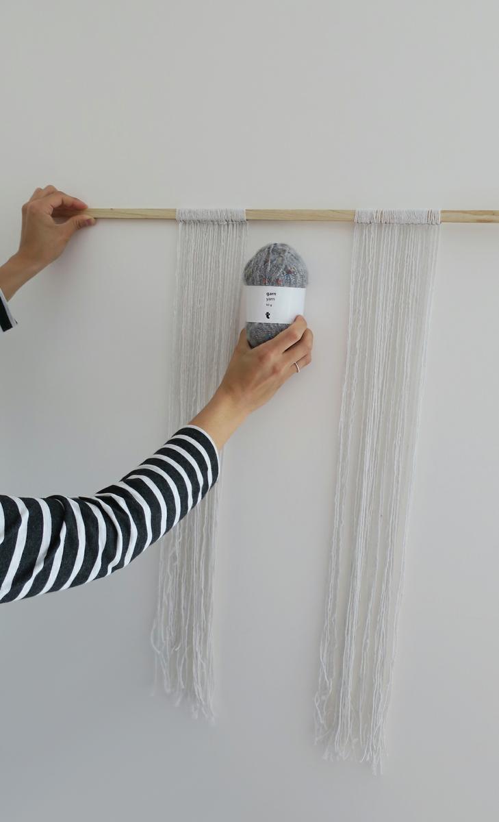 Junta las lanas lo más posible para que te quede una cortina muy densa. Además, es importante que hagas siempre los nudos hacia el mismo lado para que quede uniforme.