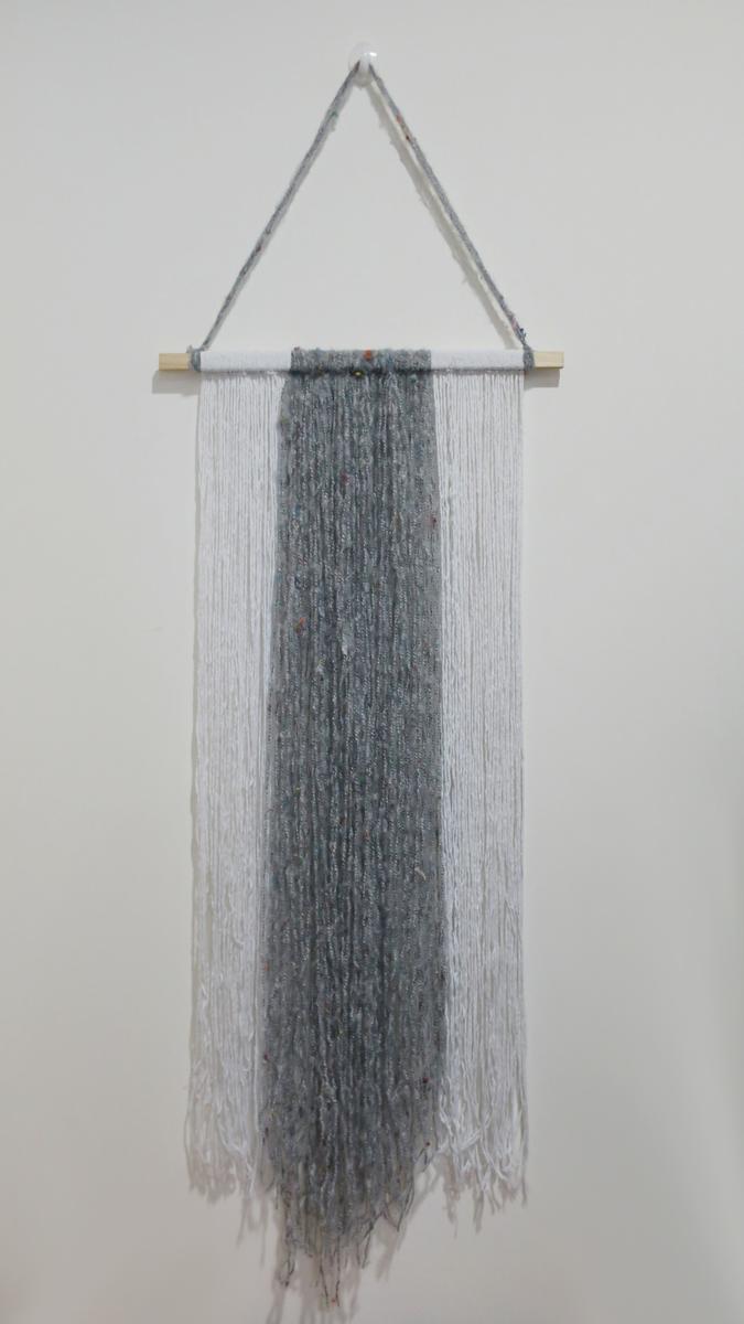 Para colgarlo, ata un trozo de lana a ambos extremos de la varilla y cuelga el adorno de la pared con el gancho (en este caso como la lana era fina, junte 4 trozos para hacerlo más fuerte)