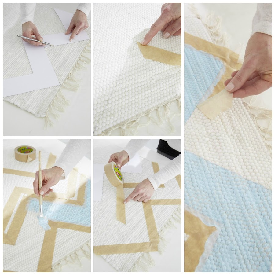 Hoy vengo con unos de esos diy que son bonitisisimos y baratos. Se trata de personalizar una alfombra sosa, en una con color y la mar de chula. En este caso es con estampado chevron, pero se podría hacer con cualquier forma. Se me ocurre que se podrían hacer dos estampados distintos en cada cara, de esa manera tendríamos dos alfombras en una.