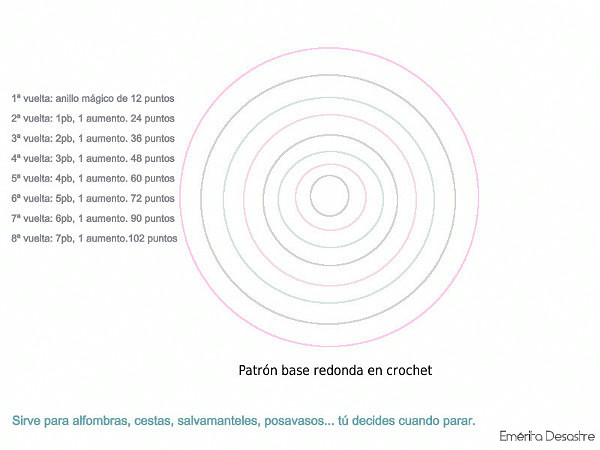 Os dejo un patrón base circular que hecho con todos los consejos e información que he sacado de la red. Aunque está para punto bajo, me ha servido para el alto.