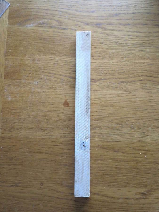 Primero tenemos que cortar la pieza central del árbol que será un listón con el largo de la altura deseada. Según la altura que queráis para vuestro árbol cambiaran las distancias, el tamaño y grosor de los listones.