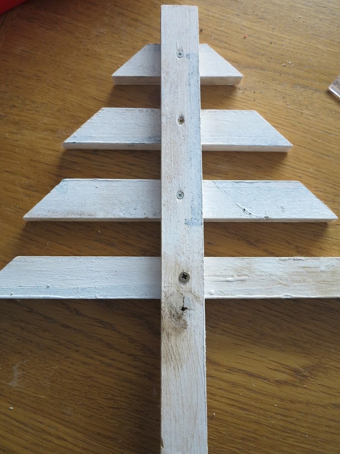 Tenia en casa unos listones finitos (si, ya me van quedando menos, jeje) así que se me ocurrió hacer un árbol pequeño para la estantería del comedor (¡¡¡wiii!!! ya tenemos primer avance del comedor, vamos a pasito de tortuguita)