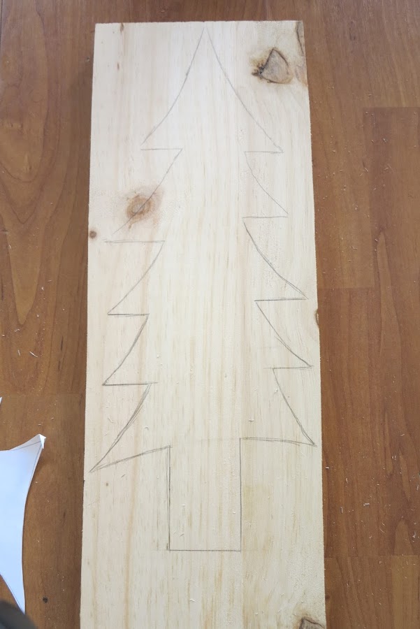 Una vez dibujados y con mucha paciencia iremos cortando la forma de nuestro arbolito y también un rectángulo para nuestra base.
