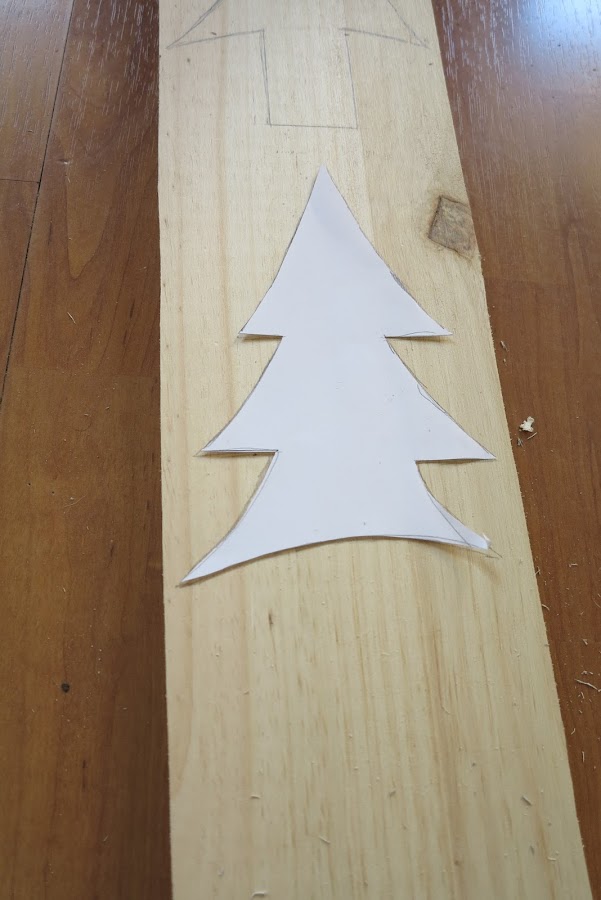 Lija.Lo primero que haremos será dibujar nuestro arbolito con su tronco en la madera. No hace falta que sean perfectos puesto que lo bonito de estos arbolitos es su propia imperfección.
