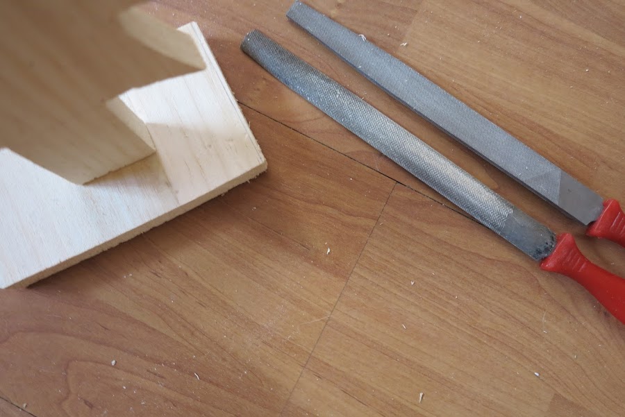 Una vez montado el arbolito lo lijaremos todo para que quede perfecto y redondearemos las esquinas de la base. Nos podemos ayudar con alguna lima de madera si queréis.
