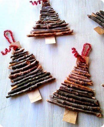 Árboles de navidad hechos con ramitas: si vas con niños al campo, llévate pegamento y cartones y te puedes pasar un rato entretenido. El resultado es muy original.