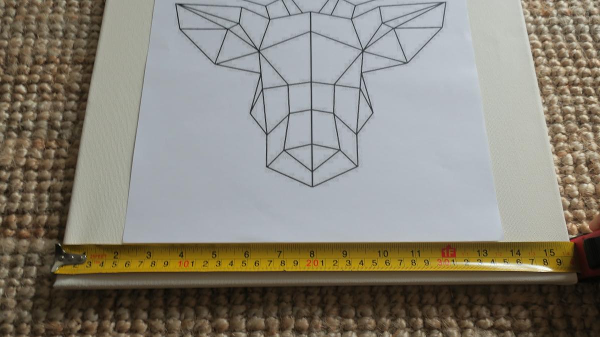 En primer lugar, centra la plantilla en el lienzo con ayuda de un metro.