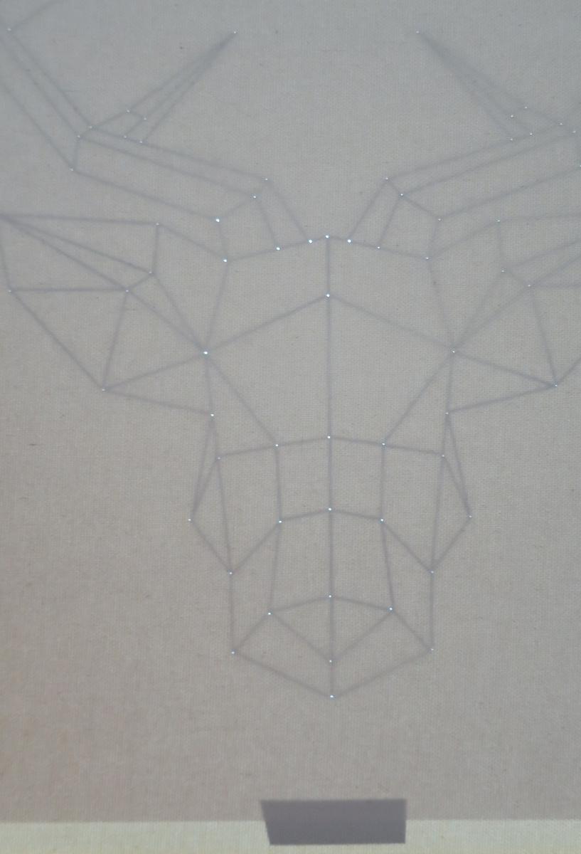 Para este cuadro de 40×50 cm, he imprimido la plantilla en A3. Si tu cuadro es más grande o más pequeño puedes ajustar el tamaño de impresión. La plantilla ha salido bastante borrosa, pero da igual, porque solo la vamos a utilizar como guía para saber dónde hay que clavar la aguja.