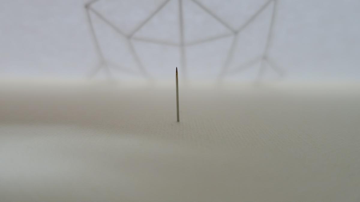 Marca los vértices de la plantilla con la aguja, para que luego sepas dónde coser. Como hay muchos, es fácil que se te olvide alguno.