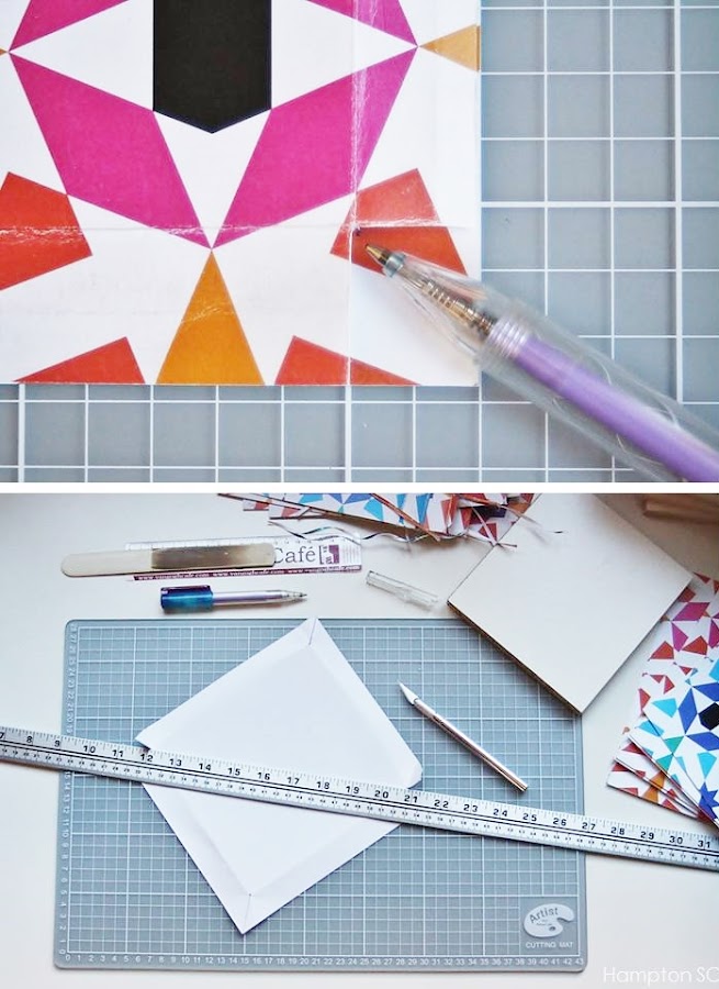 Con el primer cuadrado de cartulina hecho, fui trasladando