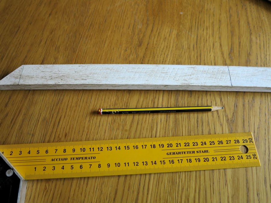 Una vez cortada la base tenemos que hacer la estructura superior. Primero cortaremos dos listones iguales de largos que los listones de la base, ya que estos serán el lado frontal y el posterior.