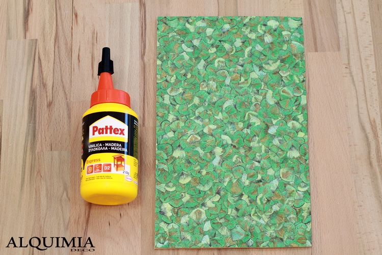 - 1 rectángulo de madera super delgada (en mi caso de 30cmx15cm)