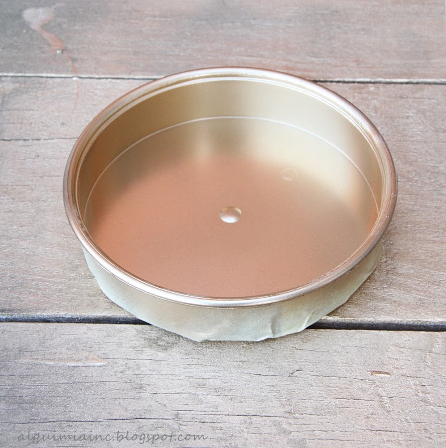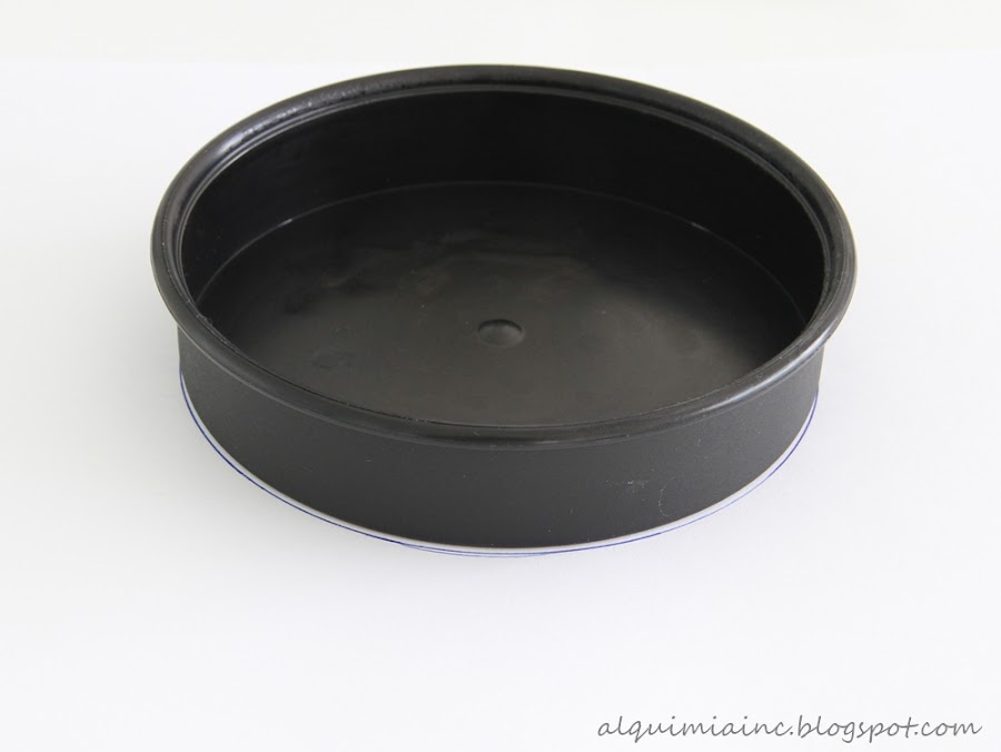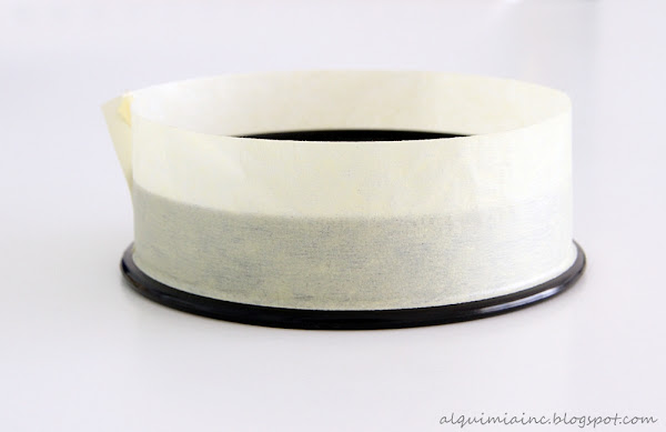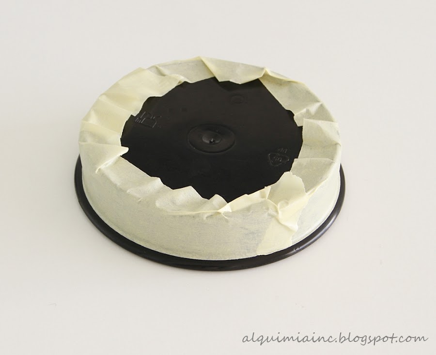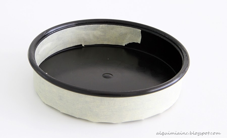 Cogemos la cinta de carrocero y la envolvemos en el exterior del tarro, pero dejando el reborde al aire. Una cosa asi: