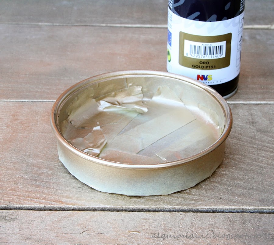 Yo he utilizado los tarros del Mercadona y pintura de spray dorada, pero vosotros podéis utilizar cualquier tipo de envase y la pintura que más se ajuste a vuestra decoración, de esta manera tenemos tres bandejas pequeñas a juego para poder poner en cualquier rincón de nuestra casa.