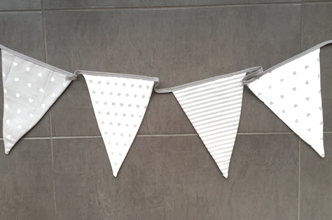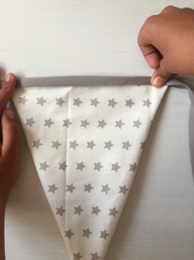 Los banderines están muy de moda, hay muchas bloggeras que ya han hecho distintas versiones súper monas todas. Acá va la mía: