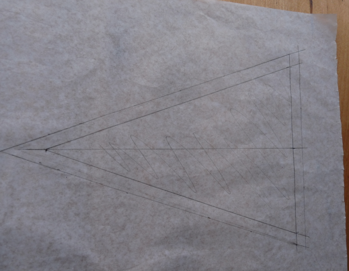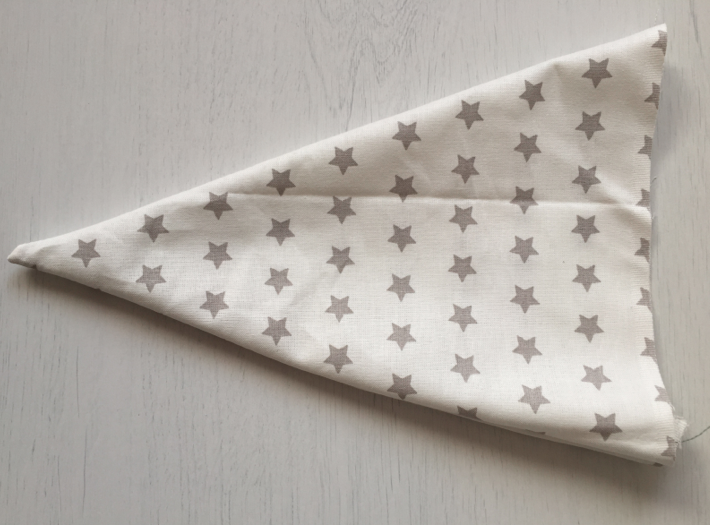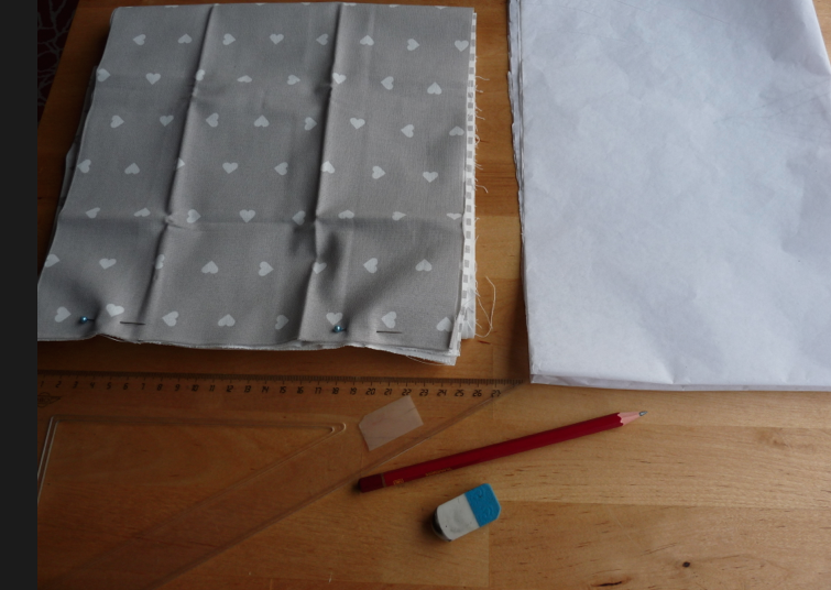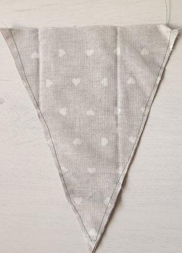 Tenía unas telas que compré en una feria que pude aprovechar. Lo primero es dibujar el banderín y a partir de ahí cortar.