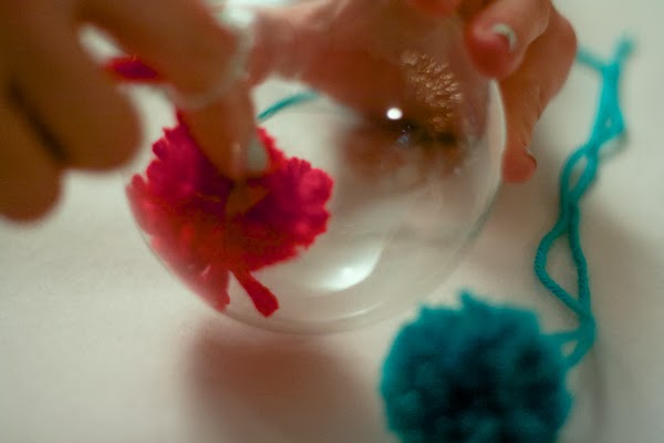 Vamos a dar a nuestro árbol de navidad nuestro toque personal, para ello hoy os propongo que realicéis unas bolas de navidad introduciendo dentro pompones de lana. Lo primero elegir el color de la lana para hacer los pompones y aqui os explico como hacerlos, y después seguir los sencillos pasos de las imágenes.