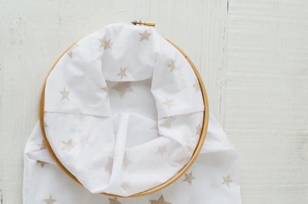 - Separamos el aro de bordar y sobre el pequeño, metemos la funda por la parte abierta.