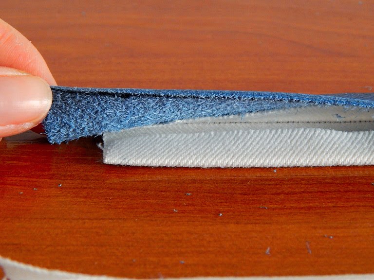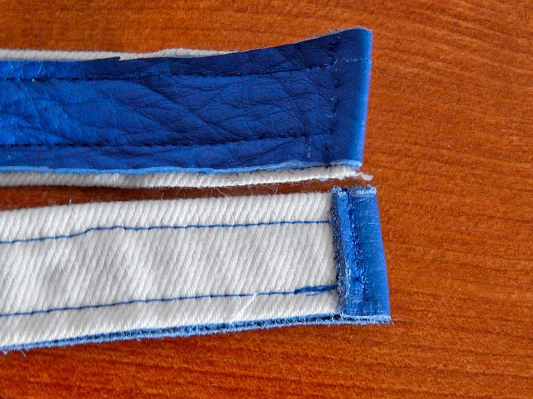 Sew the extra centimetre of leather inwards (Don"t use the sewing machine as it"s to thick).