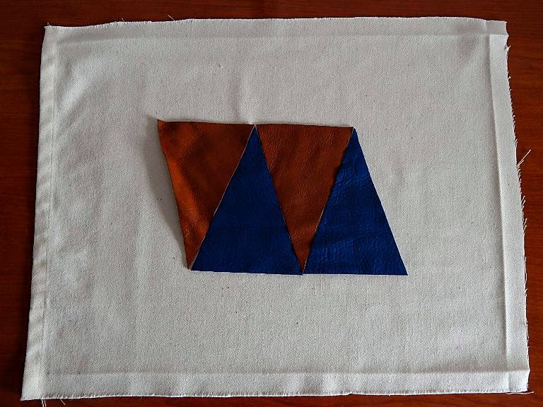 Cut the leather triangles and form the figure on the external side of the fabric. Sew each one, the more in the centre and joined they are, the nicer will be.
