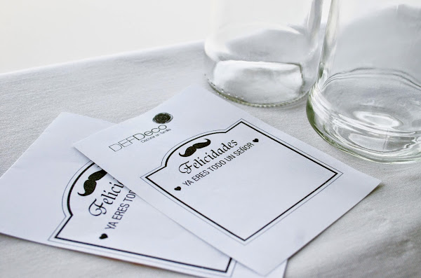 Una pegatina para personalizarlo. Nosotros hemos diseñado una pegatina muy sencilla que dice: Felicidades, ya eres todo un señor, y hemos dejado un espacio para que los enanos le hagan al tío un dibujito personalizado a gusto de cada uno... ¡Y les ha encantado hacerlo!