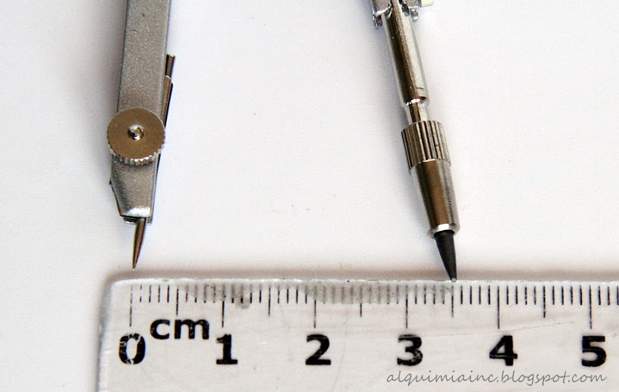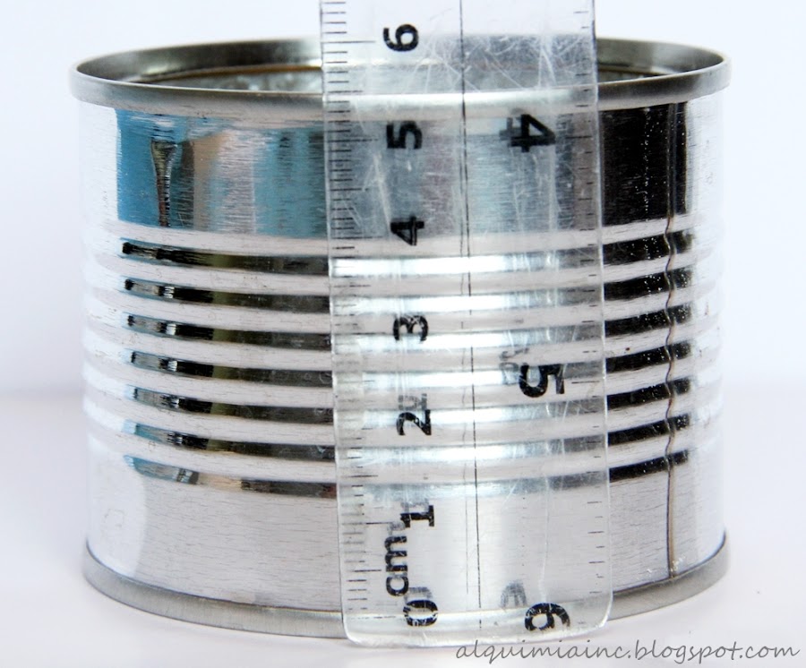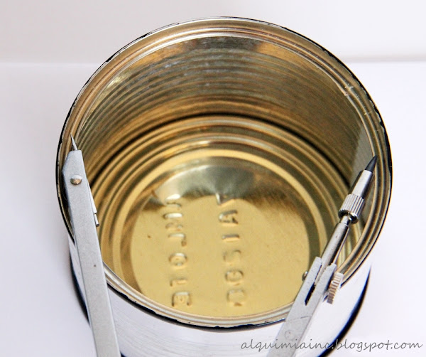 Una vez tengamos esto listo, cogemos el compás y vamos a medir la circumferencia de la tapa. Vamos abriendo el compás hasta que las dos puntas toquen una en cada extremo de la lata.