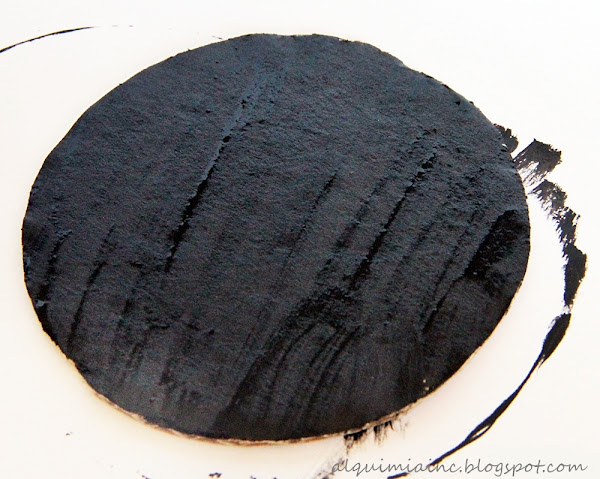 Cortamos con las tijeras la tapa, nos aseguramos que quede bien en el bote y la pintamos de color negro.