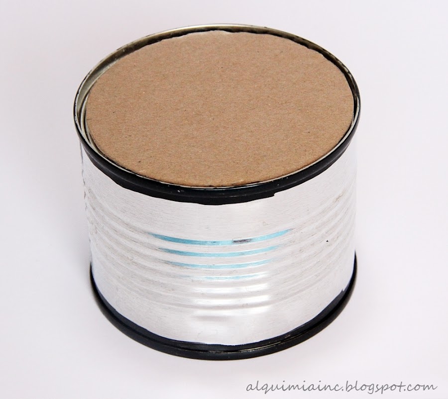 Cogemos la lata que hayamos escogido y le quitamos el papel. Si veis que los bordes cortan mucho con una lija de papel finita podéis darle un poco para que no sean peligrosos.