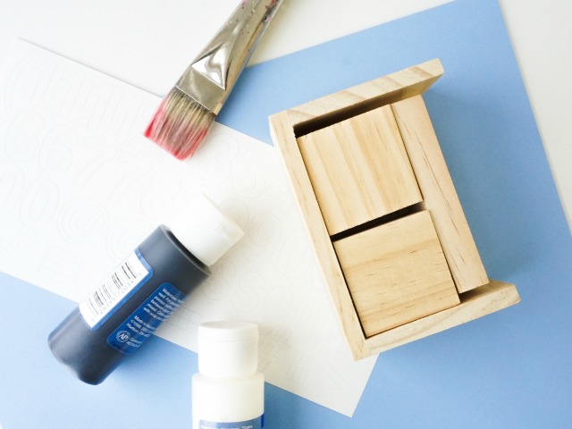 Cuando esté seca la pintura colocamos los números adhesivos en los cubos; en el primero los números 1,2,3,4,5,6 y en el segundo 0,1,2,7,8,9.