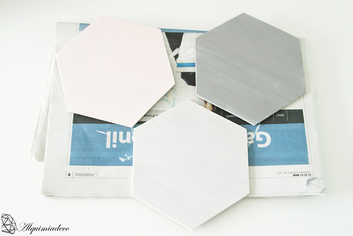 Cuando lo tengamos lijado ahora viene el paso más divertido y es..... Pintar!!!. Yo he escogido un rosa pastel, un gris claro y un gris oscuro. Tened en cuenta de añadir un papel debajo para no manchar la superficie cuando pintemos.