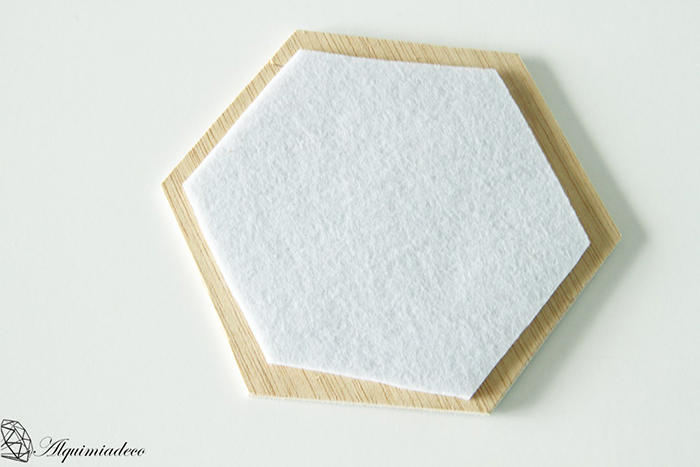 Cuando este bien seco vamos a añadirle el fieltro para que no ralle la superficie de la mesa. Esta parte es opcional, pero como yo tengo un montón de fieltro de anteriores manualidades, he pensado que no le haría ningún daño si protegía un poco la superfície, así que repetiremos el proceso y copiaremos nuestra plantilla en el fieltro, pero esta vez, de un tamaño un poco más pequeña.