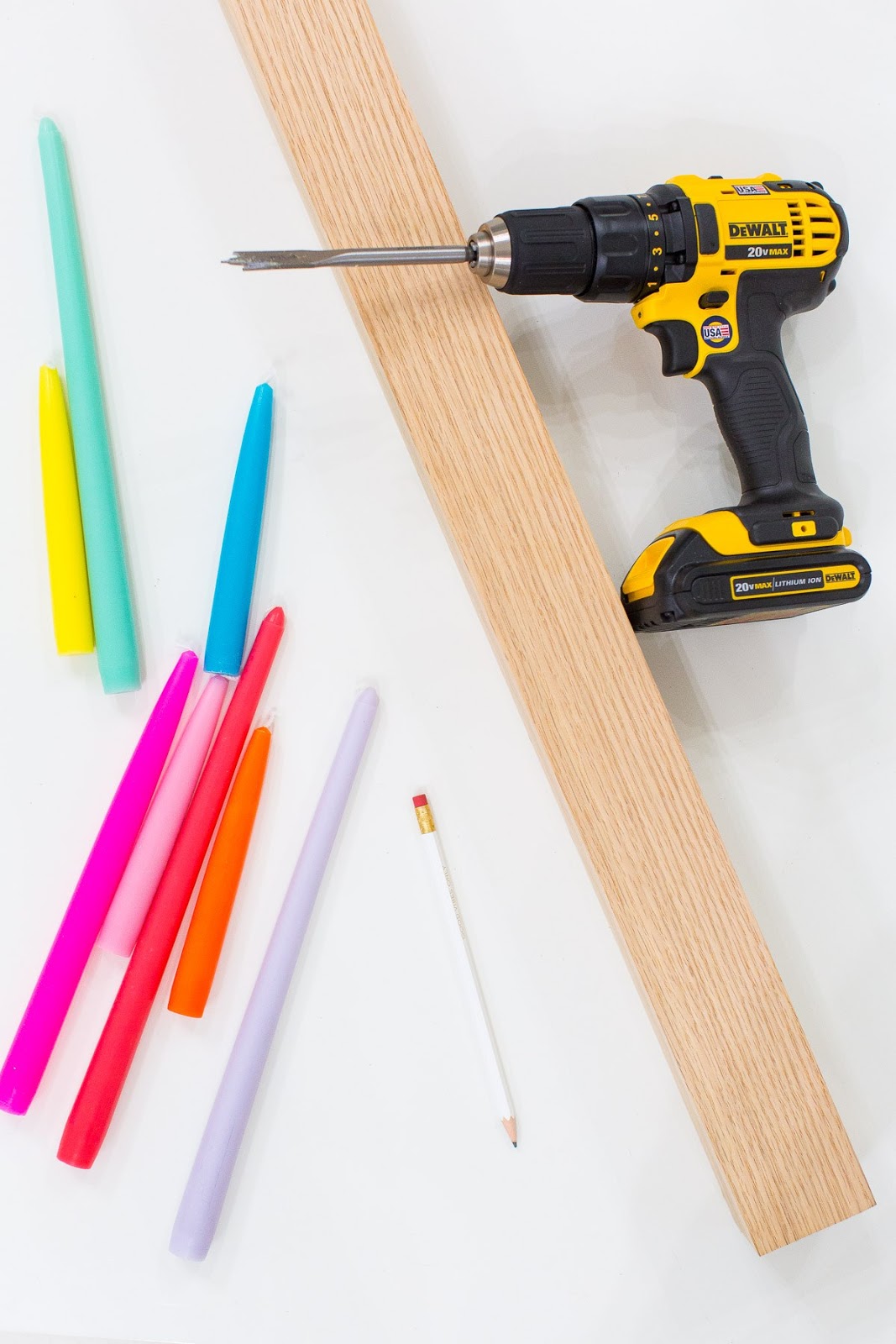 Herramientas: taladro con brocas espada (o brocas de pala) del diámetro del grosor de las velas que hayáis elegido, y lijadora o lijas.