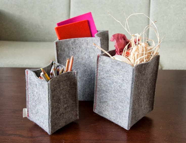 Una de nuestras cosas pendientes son las cestas de fieltro, las queremos para la ropa sucia y las bolsas del reciclaje, pretendemos que la terraza no parezca un vertedero llena de cubos y bolsas. Por ello hemos investigado y queremos compartir con vosotros este DIY.