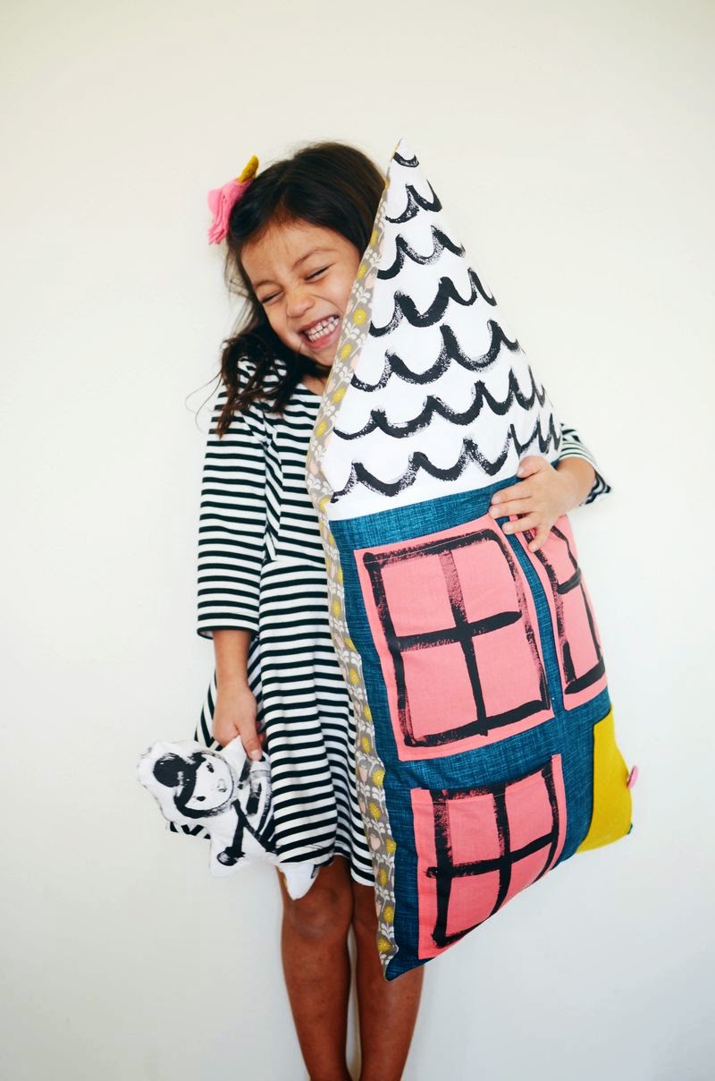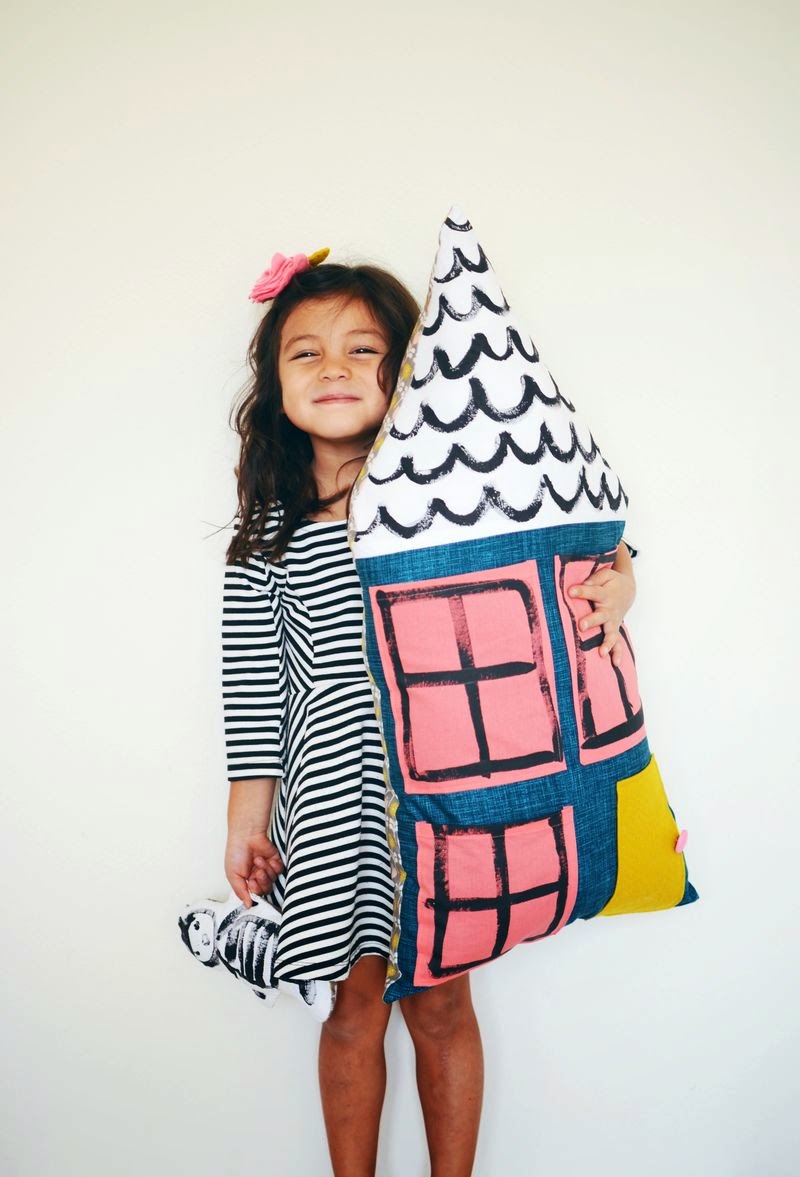 Por eso tenemos en mente hacer un par de cojines bonitos para el cuarto de los enanos, y buscando inspiración, hemos encontrado este en A beautifull mess que nos ha requete gustado... ¡Es un diy para hacer un cojín con forma de casa! ouh yeah!