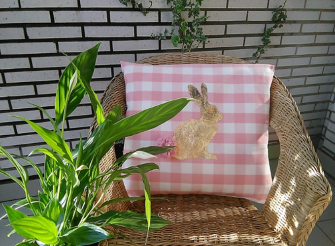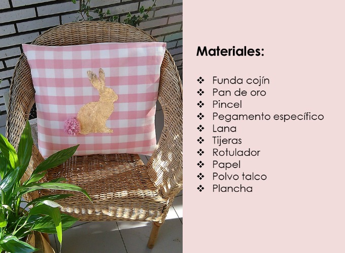 Mi aportación para #DiariodecoPascua es un diy de un cojín conejo de Pascua con pan de oro, sencillo y con un resultado muy molón.