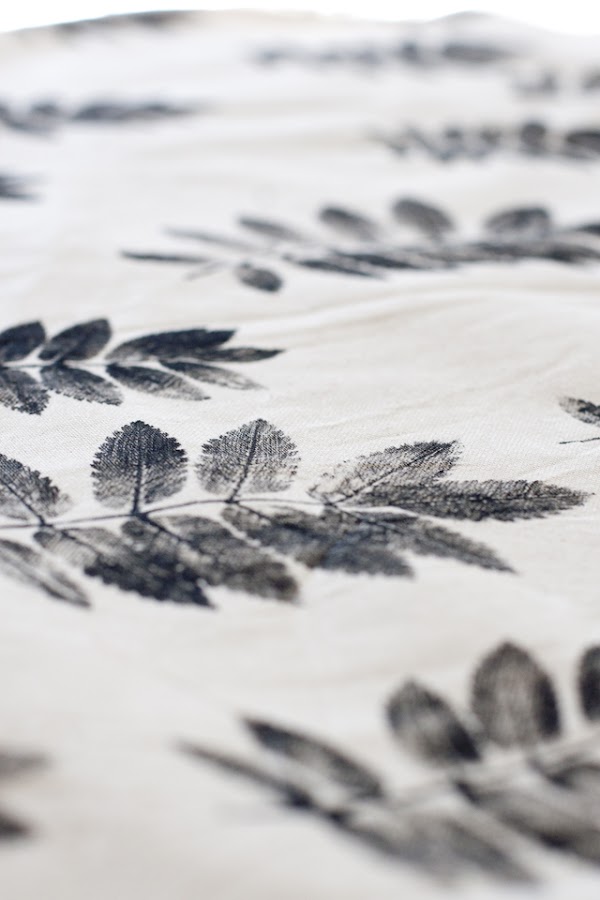 Es tan fácil como pintar la hoja por detrás y después estamparla en un trozo de tela, a partir de ahí podéis dejar volar la imaginación, unos cojines, un delantal, un mantel etc...