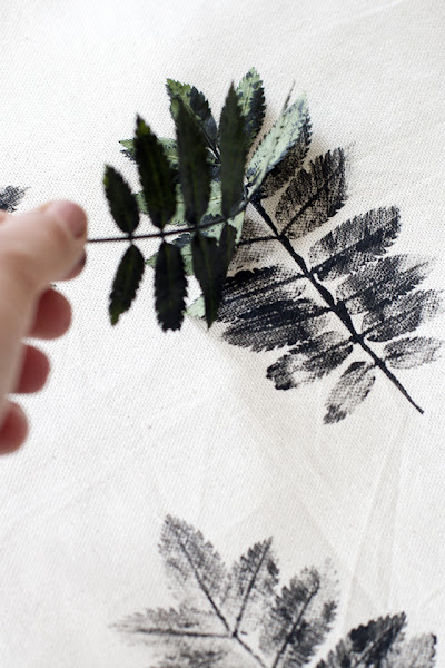 Es tan fácil como pintar la hoja por detrás y después estamparla en un trozo de tela, a partir de ahí podéis dejar volar la imaginación, unos cojines, un delantal, un mantel etc...