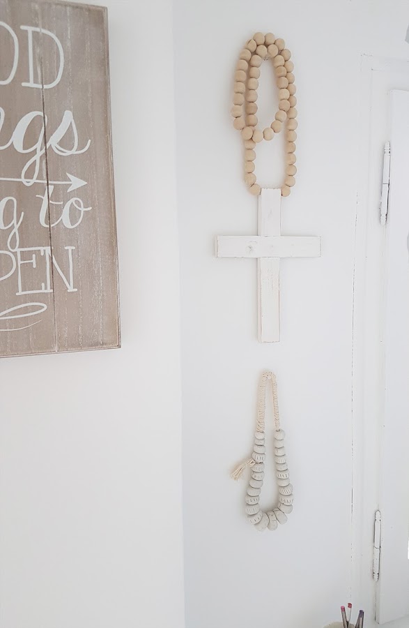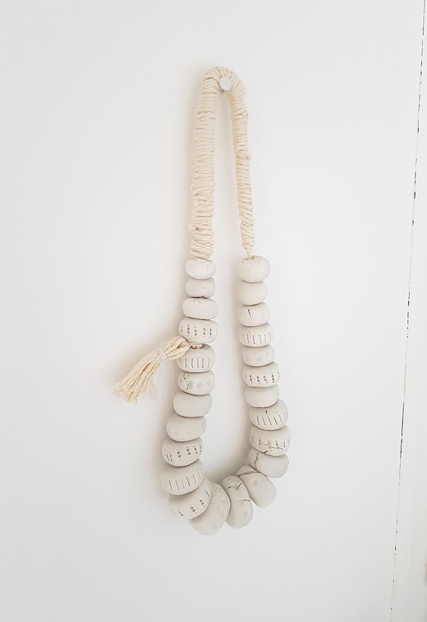 Pero la cuestión es que nos quedaba un trocito de pared para llenar y que como bien os decía sabía exactamente lo que iba a ir, así que esta vez, me puse manos a la obra. Seguramente, si hubiera buscado por la red, hubiera podido encontrar collares decorativos de bolas, pero no se, me gustaba la idea de hacerlo yo misma y que me inspirara, así que me puse manos a la obra.