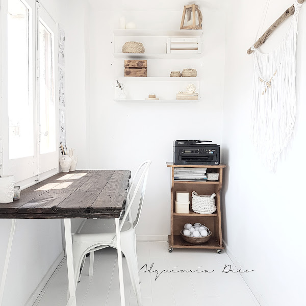 Como veis, los colores son muy neutros en mi caso, pero vosotros podeis utilizar los colores que queráis, pero nosotros queríamos que siguiera la misma línea de la habitación asi que.... Más adelante si queréis, os hare un mini tour por la zona de trabajo para que veais como lo tengo ordenado todo etc.., eso si, os lo haré en video porque será mucho más fácil y lo veréis todo mejor.