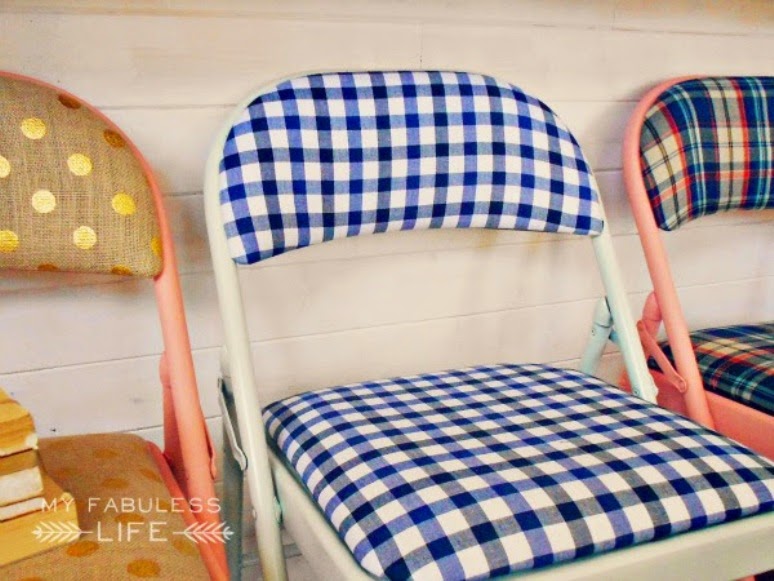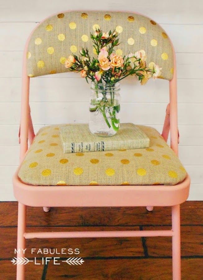 ¿Tienes unas sillas plegables en casa? ¿Y están tapizadas? Estás de suerte, porque podrás hacer algo tan fabuloso con ellas como con estas sillas del tutorial de hoy... De unas sillas aburridas a unas sillas que te encantará enseñar a tus invitados, fácil, rápido y barato! ¿Se puede pedir más? Sólo vas a necesitar pintura en spray, uno por cada silla, tela, grapadora y tornillos. Empezamos: