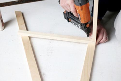 Además del pegamento específico para madera, puedes utilizar una pistola de clavos para sujetar los listones. E incluso insertar algún tornillo con un taladro atornillador. Procura hacer cortes limpios y lija los bordes para eliminar las astillas de la madera antes de unir los listones.