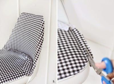 Paso 3: corta las piezas de tela para el respaldo y el asiento. Lo más importante en este paso es asegurarte que si la tela tiene algún dibujo, que quede bien alineado con la posición de la tela.