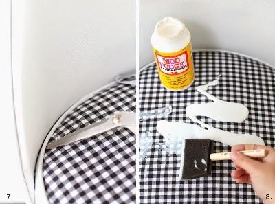 Paso 8: para asegurar una buena adherencia, aplicar Mod Podge o cola blanca por encima de la tela.