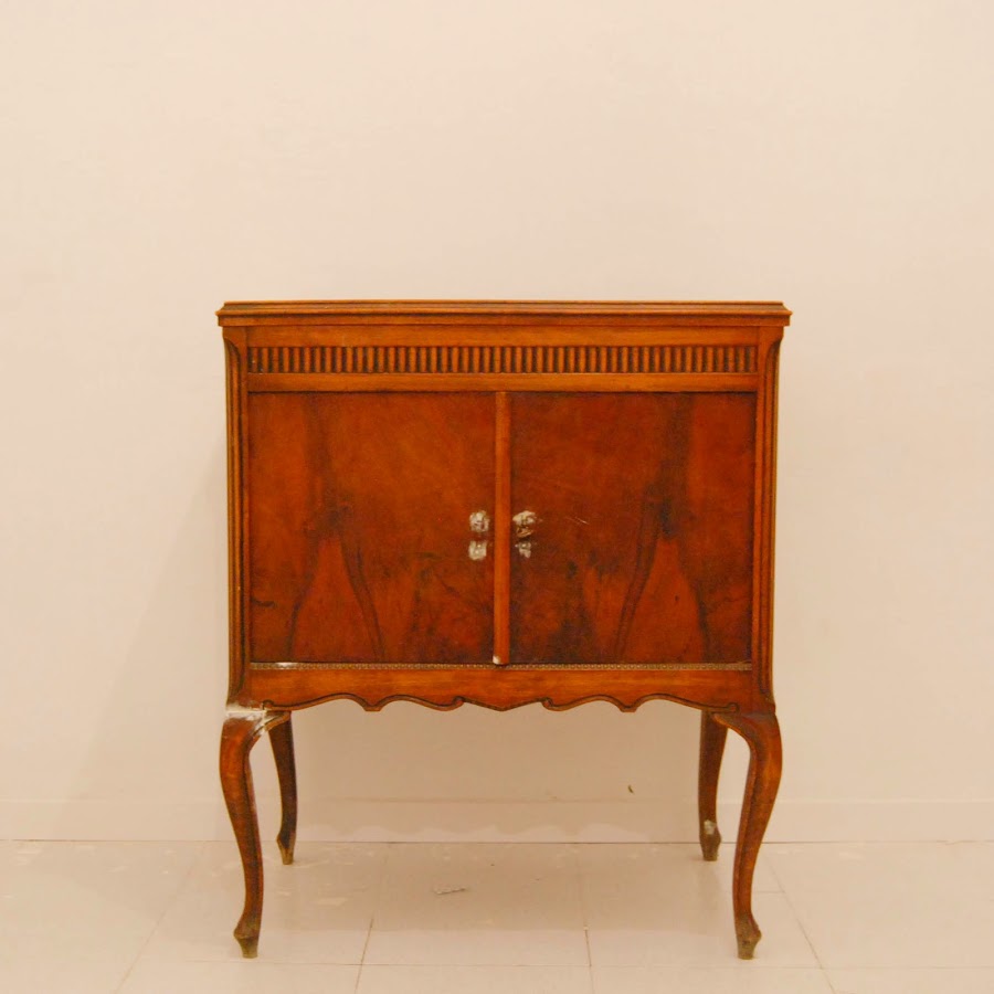 En cuanto vimos este mueble, nos enamoramos de sus formas, su elegancia y ese aire de mueble poco convencional, pero que a la vez puede tener muchos usos... Y cuando conocimos a su dueño, Dominique, nos gustó más todavía... Había sido un mueble tocadiscos que él transformó en mueble bar... Y es que Dominique era un seductor entrañable, amante del buen Whisky y de las mujeres hermosas...