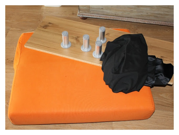Con los cojines de la base, me he hecho un banco-reposapiés para el salón.