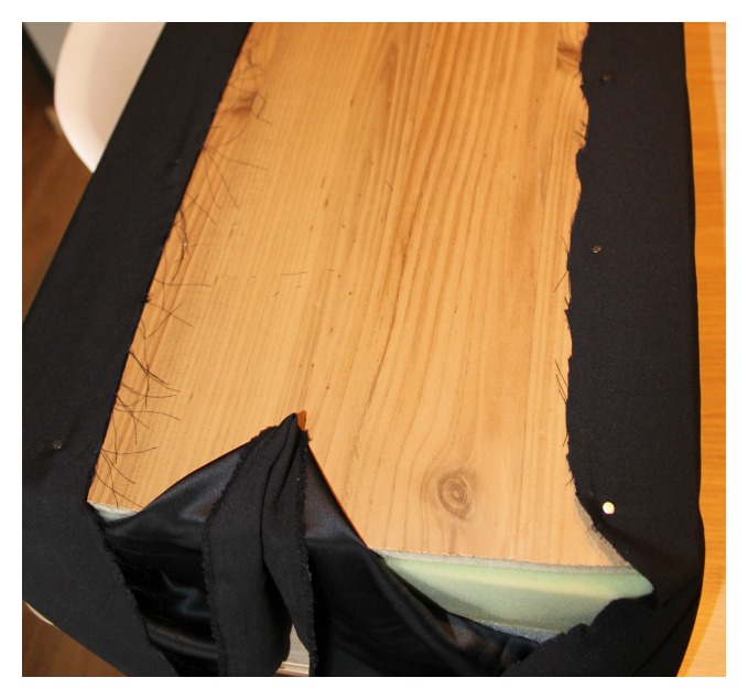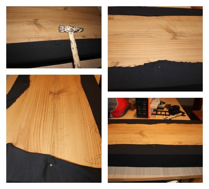 Colocamos la espuma y encima de ésta, la tabla. Procedes a grapar.
