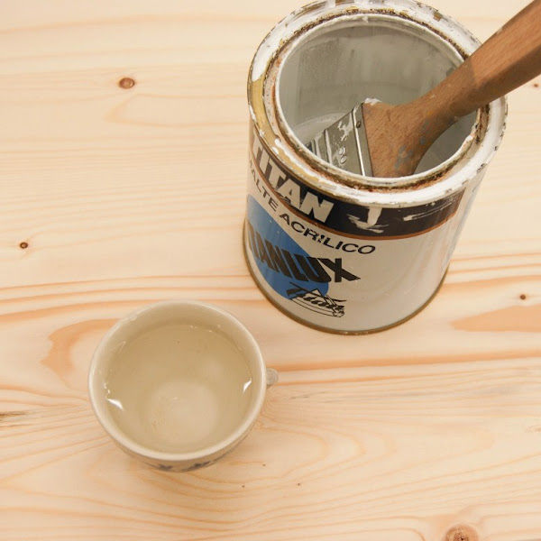 En primer lugar, decidimos que una de las caras del biombo lo queríamos liso, al principio pensamos en pintarlo de blanco, pero las aguas de la madera eran tan bonitas, que optamos por una pátina blanca, que la dejara a la vista, a la vez que aclaramos la madera. La mezcla que hicimos fue de 2 tazas de agua por 1 taza de pintura. Aplicamos la pintura y enseguida retiramos el exceso con un trapo. Como ves, es fácil y el resultado es precioso.