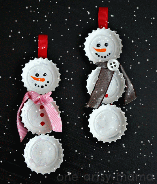Un diy fácil para adornar el árbol de navidad que nos trae One artsy mama. Es un muñeco de nieve hecho con tapones de botella. ¿Os animais? Pués vamos a ello ...