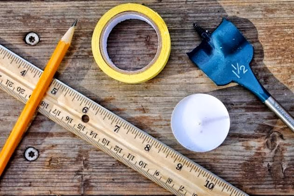 El procedimiento es sencillo. Ayudándote de la regla y el lápiz, has de medir la distancia exacta para ubicar cada una de las velas que quieras poner (también dependerá de la longitud del tronco). Una vez señalizado en el tronco los puntos donde irán las velas, has de taladrar en círculo hasta que en el agujero puedas colocar una vela. Y así con todos los puntos donde vayas a poner las velas. Una vez tengas todos los agujeros hechos, solamente faltará darle la vuelta al tronco para limpiarlo de serrín, y ya tendrás un portavelas de aspecto rústico y natural. Como puedes ver en la imagen, los agujeros no quedan perfectos, pero eso le añade un plus de autenticidad al portavelas.