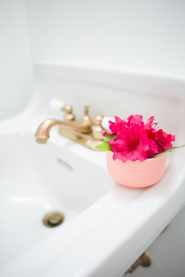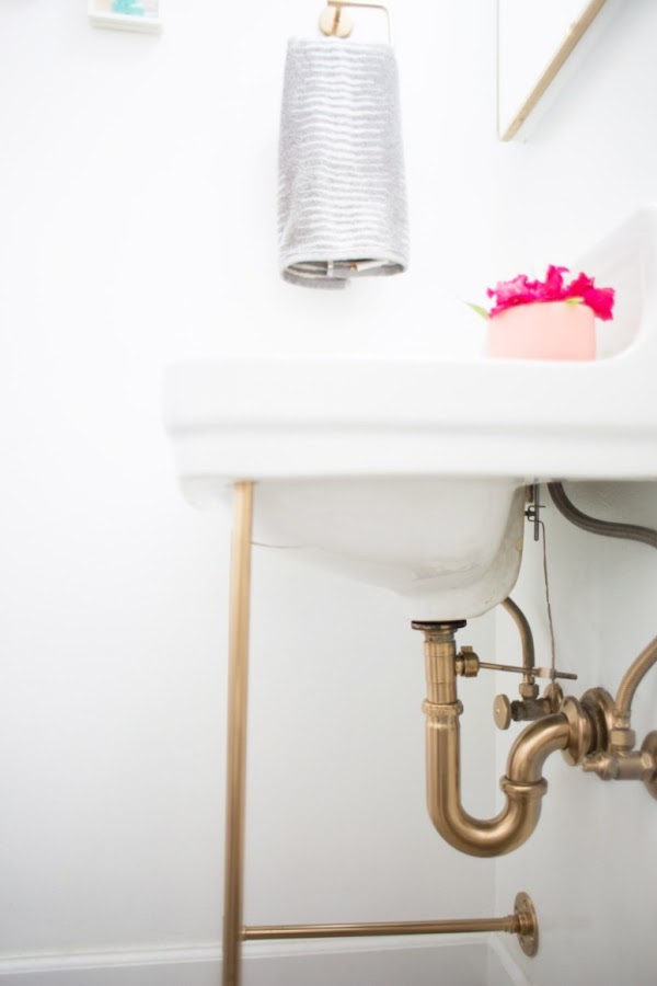 No sé tú, pero aquí en España cuesta mucho encontrar este tipo de lavabos, y cuando entras en cualquier piso estándar, te encuentras el lavabo con pie blanco a juego y si quieres hacer un lavabo flotante, tienes el problema de encontrar los tubos y sifones de un color aceptable... Así que este DIY que hemos encontrado nos ha encantado, porque lo simplifica todo: ¿no te gusta el color de los accesorios, tubos o conexiones? Pues cámbiale el color!!!